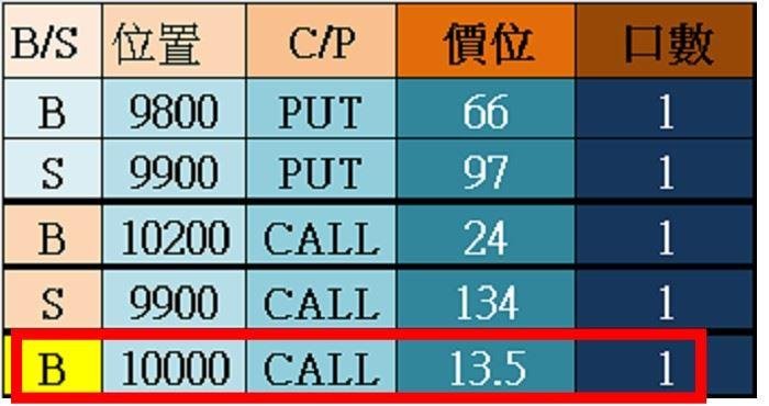 於是 阿昇 買了 一口 週選 10000C @ 13.5 來避險