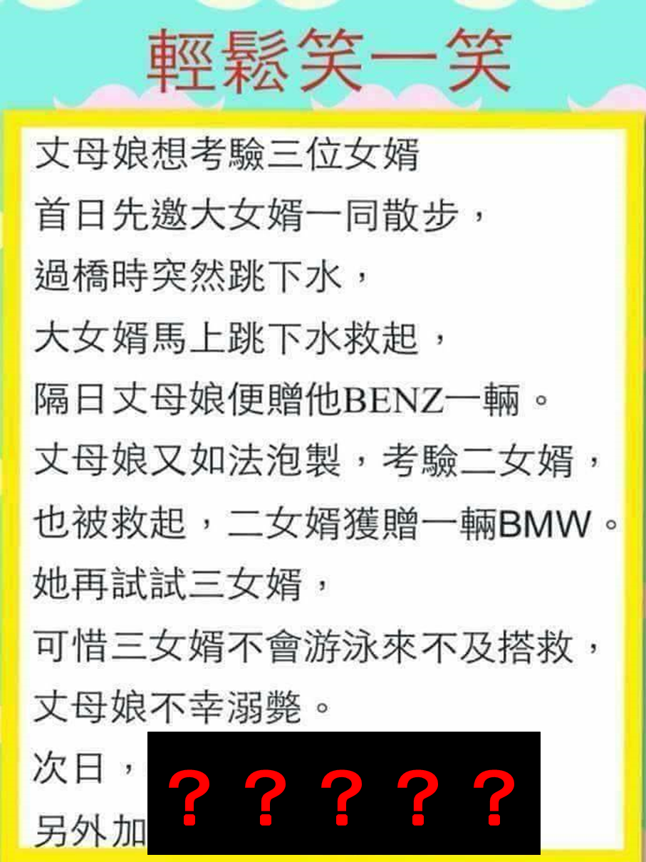 丈母娘不幸溺斃!次日,岳父便送他一棟別墅,另外加送一部法拉利