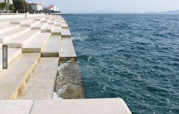 ▼在克羅埃西亞有一處階梯建築的巧妙設計,讓所有經過的民眾都聽到從未感受過的音樂世界。這是一排長達230呎(約70公尺)的管風琴設計,當海浪拍打著各個孔時,就會譜出一首首動聽的歌曲。