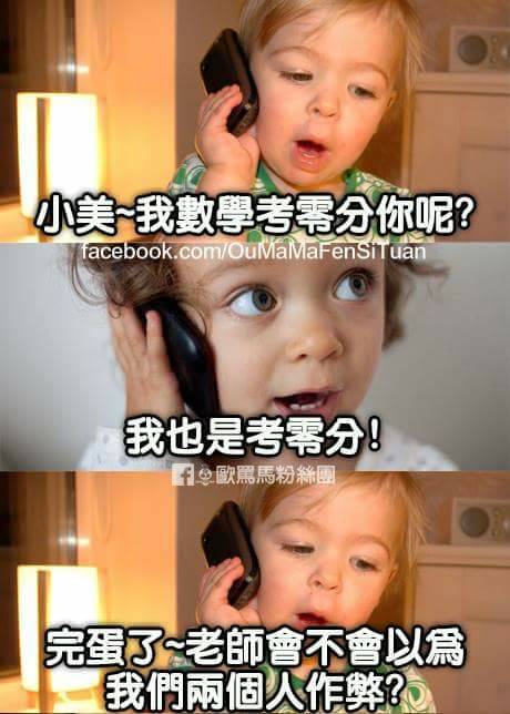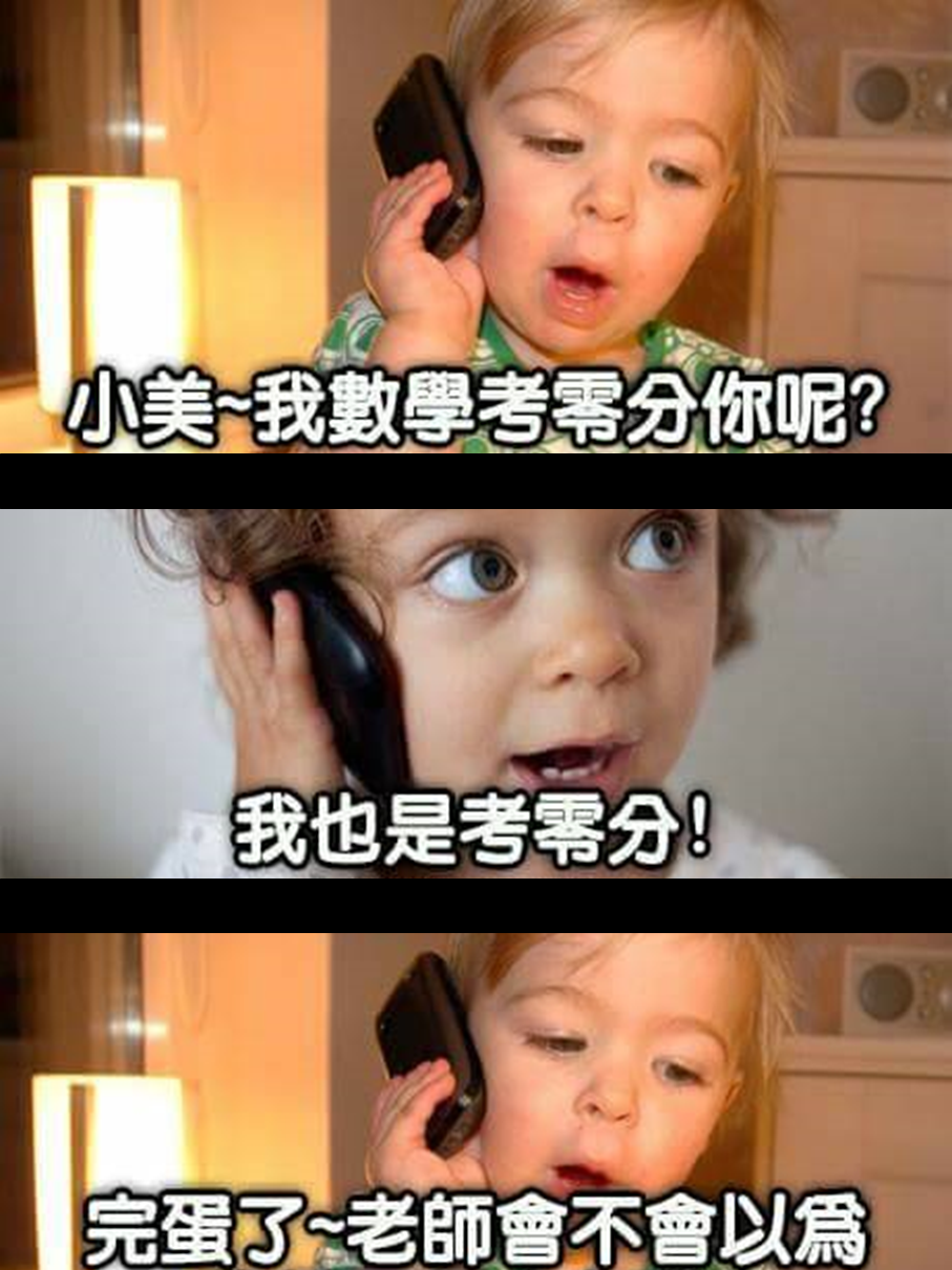 我數學考零分你呢? 我也是考零分! 完蛋了~老師會不會以為......