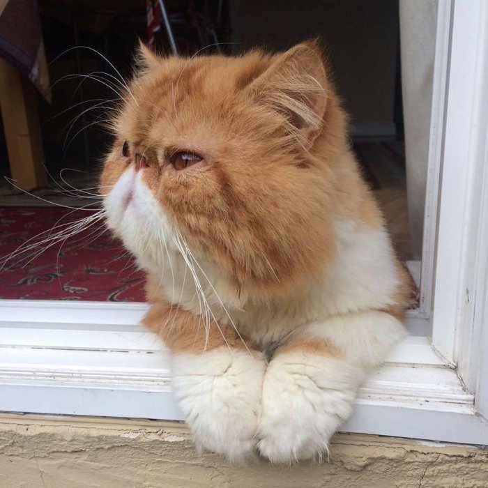 動物和人一樣,也有超重問題,體重超標對身體危害超大的。下面這名網友就很為家中的貓咪擔心,他家的貓圓滾滾的,從腦到尾巴都寫著「胖子」兩個字。看看牠趴在窗檯向外看的模樣,連腳都肥嘟嘟的。