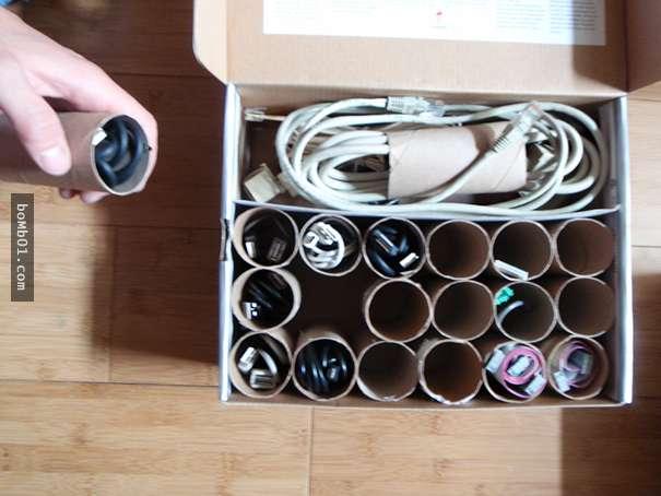 ▼19. 捲筒衛生紙的芯能用來收藏電線。