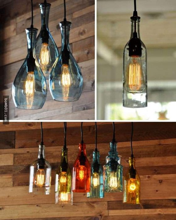 ▼6. 喝剩的紅酒瓶變成燈罩。