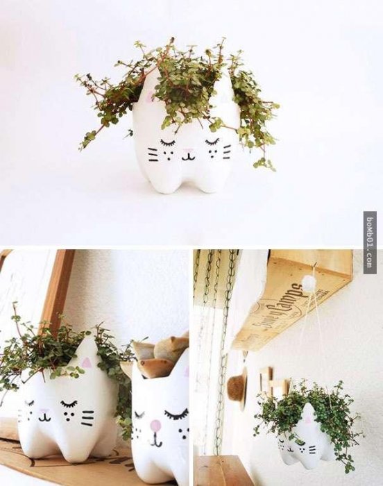 ▼20. 可愛的塑膠罐也可以用來種花喔!