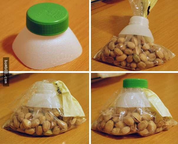 ▼16. 飲料罐的開口處剪下來,就可以用來密封塑膠袋。
