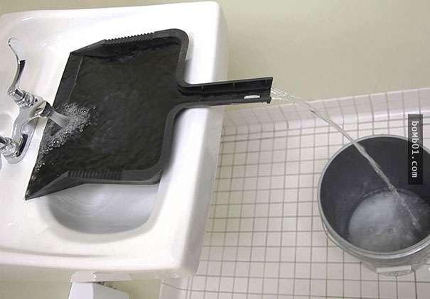▼17. 容器太大不容易從水槽中裝水時,就用小的畚箕接水吧!
