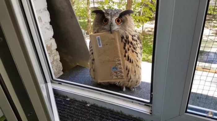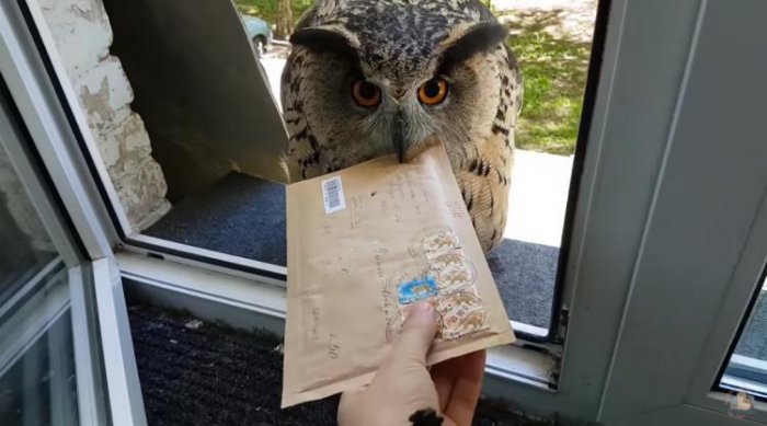 最近有位俄羅斯女子分享了一支關於會送信的貓頭鷹影片