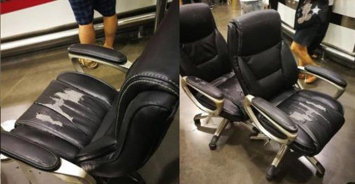 該民眾說「才」用了兩年椅子就變成這樣
