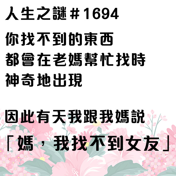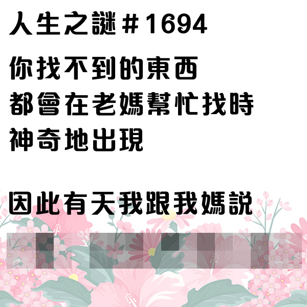 找不到東西時只要大喊『媽~』東西就會出現了,因此有天我跟我媽說....
