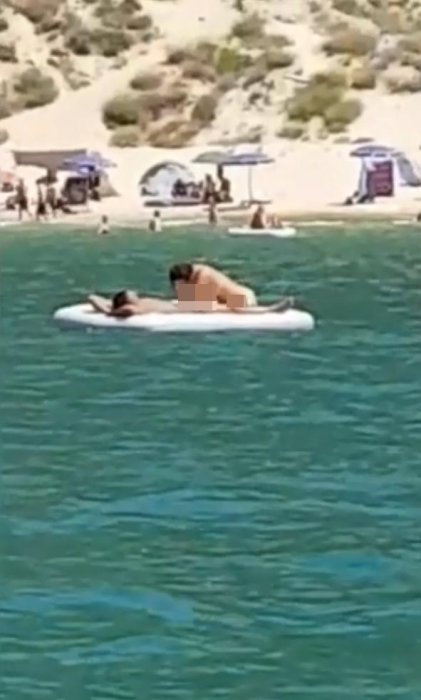 有網友在國外拍到了一段情侶太放鬆~男子躺在海(或湖)中間的充氣墊上面,兩手交疊放在頭後面,而女子則跪在下半身附近賣力吞吐著男子下身,兩人都沒有穿衣服!