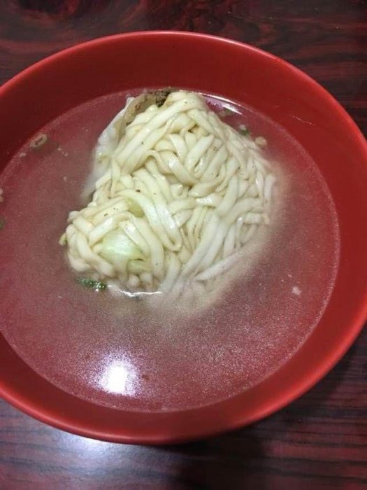 堪稱地表最陽春,據網友說法,湯也完全是沒味道的清湯。於是她向老闆要求加一些肉燥,沒想到老闆說「要加錢」,讓她不滿抱怨是肉燥很貴?碗裡面才一小小匙而已!(在哪XD?)有網友在底下砲罵她,她就是點陽春麵,想吃肉燥幹嘛不點肉燥麵?