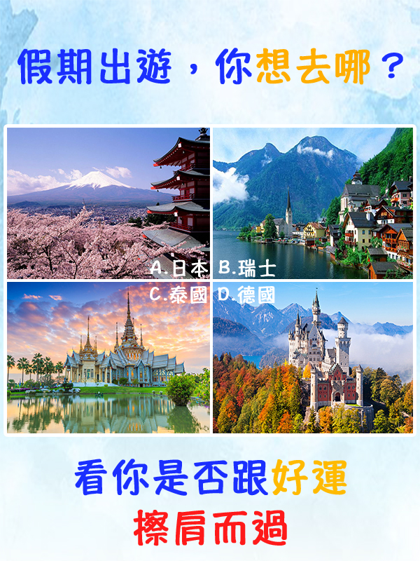你實在是太幸運了,無論是戀愛、生活還是工作,總是能夠遇到好機會,雖然偶爾也會摔個跤,碰個壁什么的,但是都能夠很快調整過來,繼續開心的生活。時常將微笑掛在臉上,遇到困難時也是笑著去面對和解決,這便是你好運不斷的最主要的原因。