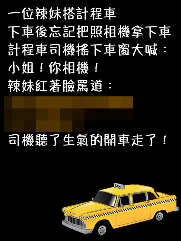 一位辣妹搭計程車忘記把東西帶下車,司機好心提醒卻反被辣妹罵?