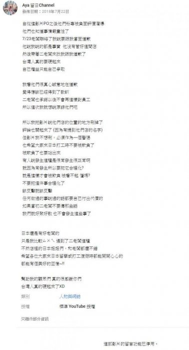 一名在日本留學打工的台灣 Youtuber「Aya」