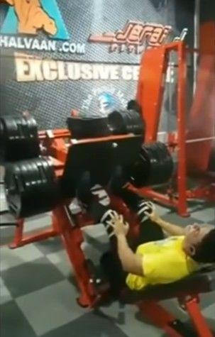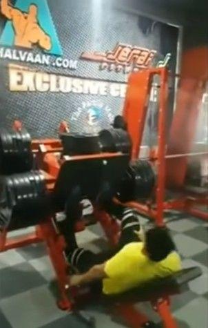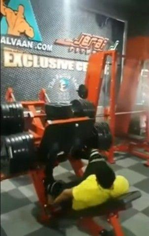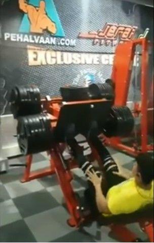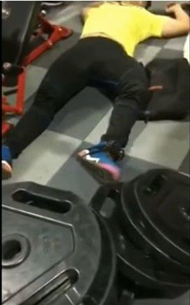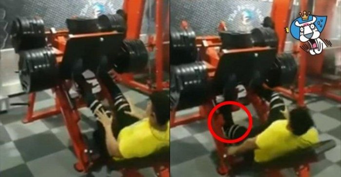 「請朋友拍影片,應該是想秀自己可以的腳可以舉多重吧,小心為上策啊。」