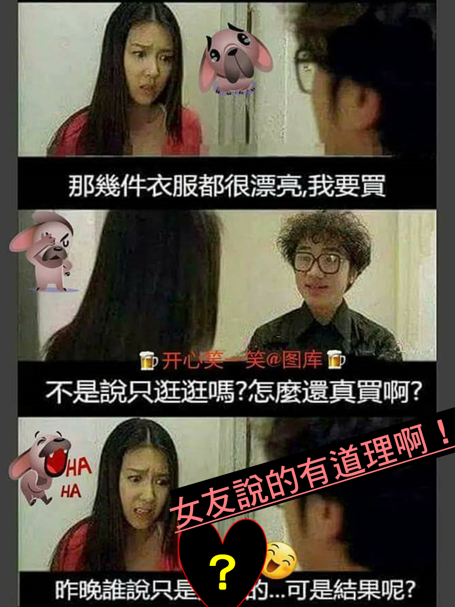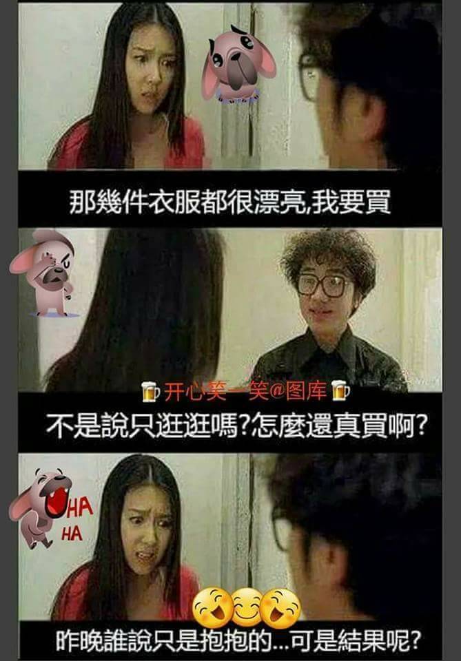〖爆趣〗那幾件衣服都很漂亮,我要買!不是說只逛逛嗎?怎麼還真買啊? 昨天誰說只是XX的?......可是結果呢!