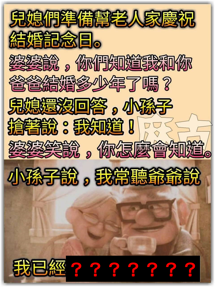 〖爆趣〗奶奶說:你們知道我和你爸爸結婚多少年了嗎? 孫子搶著說:「我常聽爺爺說,我已經...」