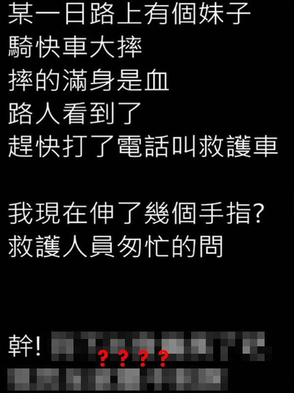 【爆趣】妹子出車禍,救護人員詢問傷者意識,結果妹子的回答讓人爆傻眼