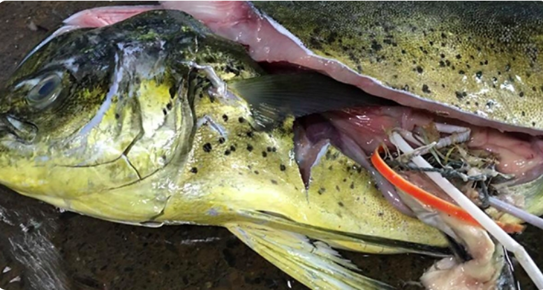 近年來環保意識抬頭,越來越多民眾開始有了自備餐具的觀念,拒用免洗餐具不僅能夠減少垃圾量,也能避免通常是塑膠材質的塑膠餐具被無辜動物誤食。日前,一位網友在臉書上貼出這張鬼頭刀魚肚剖開後的照片,魚肚中有吸管、塑膠圈等人為地垃圾,讓他不禁感嘆的說「唉!你們看到了沒?不想再講了!」