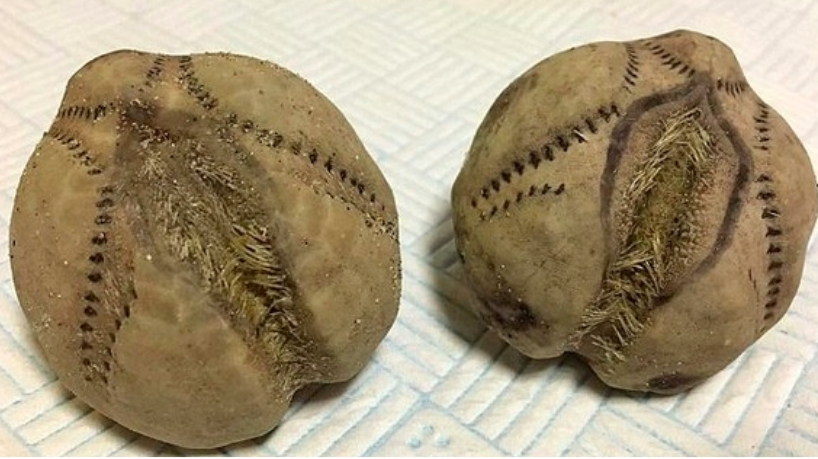 ▼湊近看這些球體,就可以看到它們上面有許多「縫線」,中間還有一個大大的裂痕,有些人形容它很像是石器時代的棒球,也有人說這根本是恐怖的異形蛋!