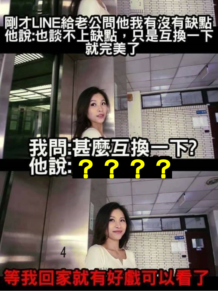 【爆趣LINE推播】剛才LINE給老公問他我有沒有缺點?他說:「也談不上缺點,只是互換一下就完美了!」 然後他說:「......」
