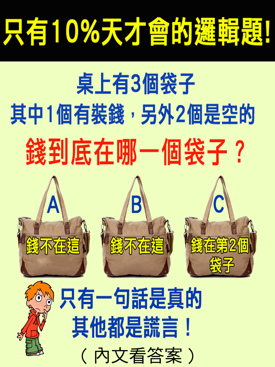 已知:只有一句話是真的,其他是謊言,我們就通通來套用看看,