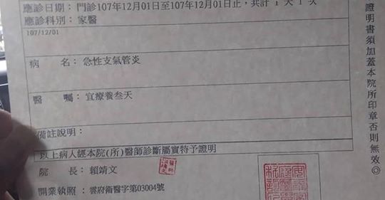 我也確實是生病已經半個月以上都沒好了,上班跟客人講話沒辦法講一直咳嗽,因為公司不准假,所以我改病假看阿嬤順便看醫生,我回我家雲林看醫生,就醫證明不是在雲林開請問要在哪裡開?