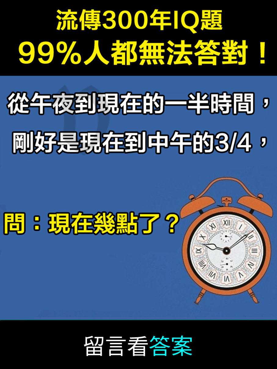 【QA】流傳300年IQ題 99%人都無法答對!問:「現在幾點了?」