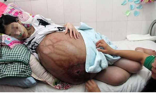 正當大家都以為她只是有輕微的腸胃毛病時,醫生卻在她的腹部裡發現一個整整有哈密瓜大的「巨型球體」,超可怕的模樣把大家都嚇壞了!