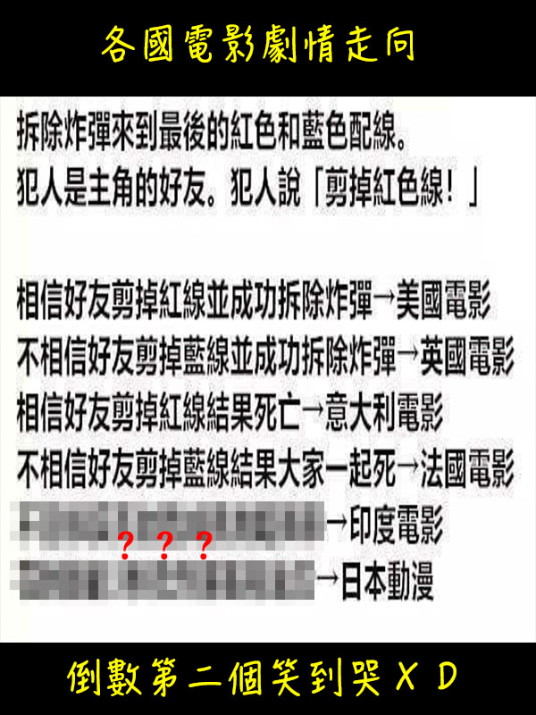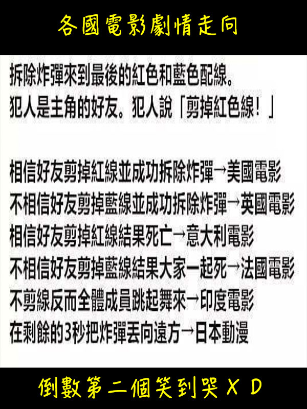 各國電影的劇情發展走向,倒數第二個太好笑了XDDD