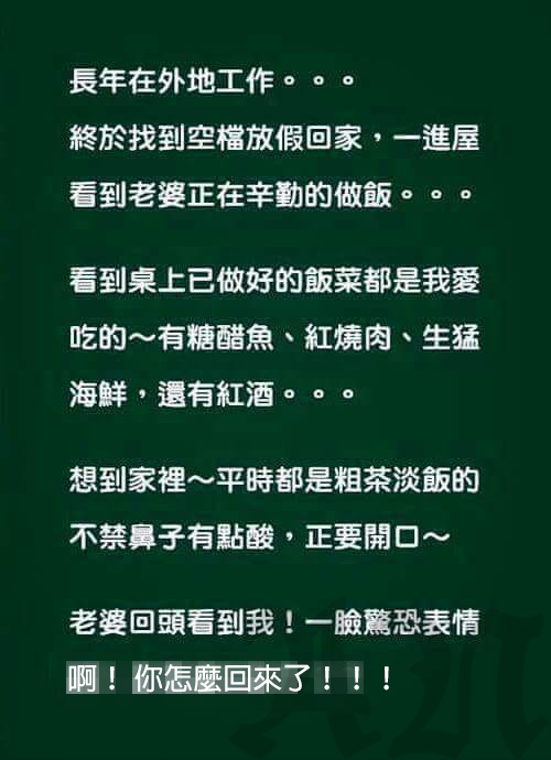 【笑爆】長年在外工作的我,難得放假回家,卻發現老婆⋯⋯