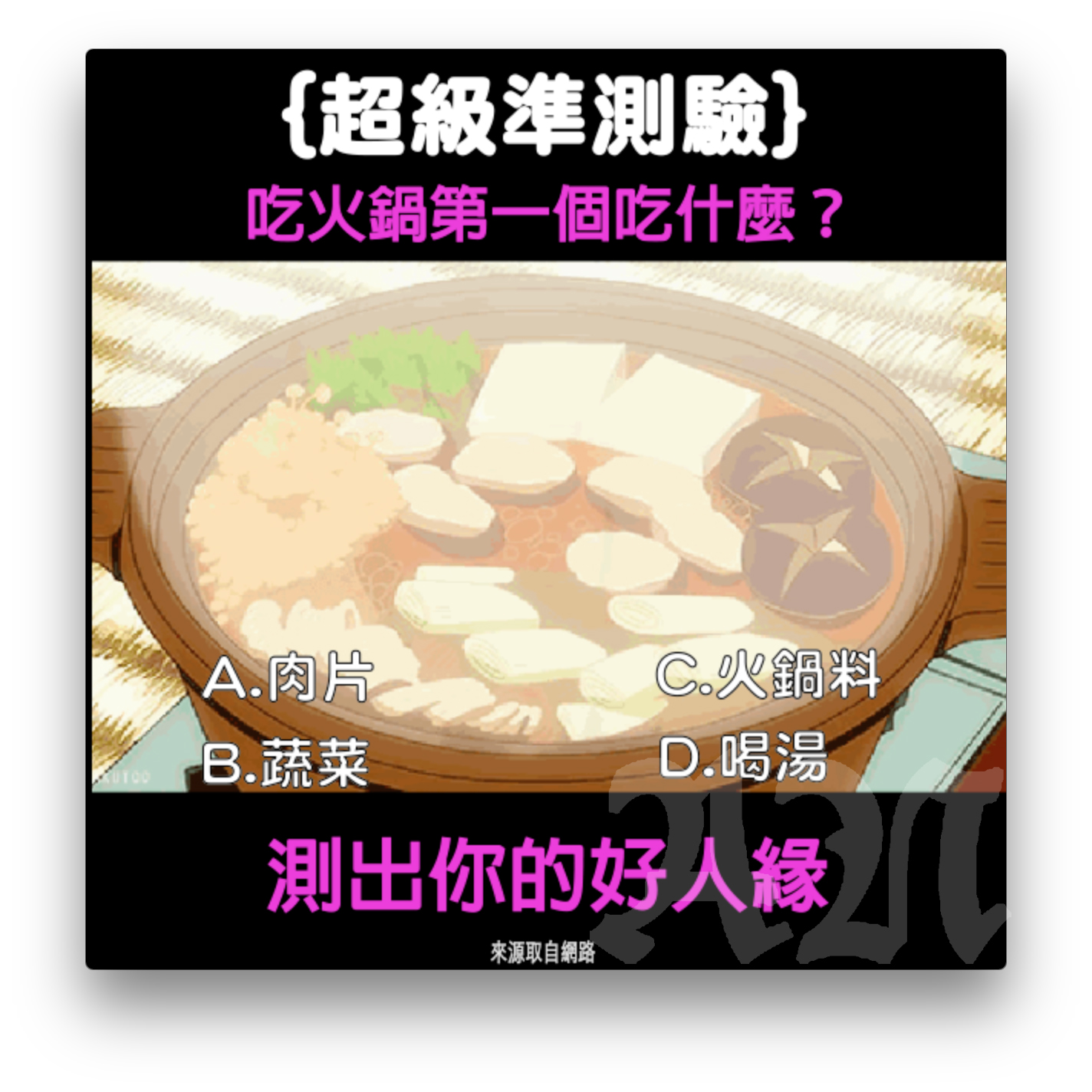 第一個吃火鍋料的你,人緣指數70%