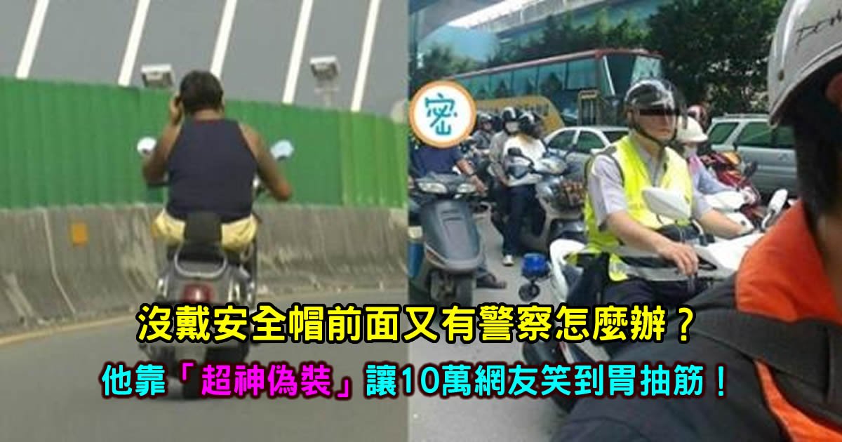 臉書粉絲團「小老婆汽機車資訊網」分享一張照片,圖中警察騎警車在等紅燈,後方卻有一位中年男子頭上明顯沒有戴安全帽,不知是否心虛怕被抓,還是一直以來的慣用的犯罪手法,竟然把草樹堆直接套在頭上,讓無數網友笑翻!