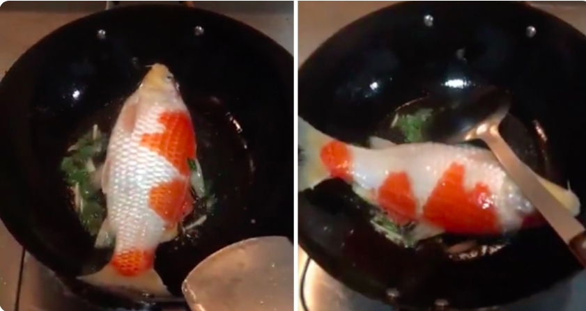 影片引起網友熱烈討論,有人都對這個舉動非常傻眼,紛紛留言:「我想到我們學校池塘,超噁」、「這我不行」、「要煎之前要殺一下吧」,也有網友在討論錦鯉的口感如何,對吃有人留言表示「確實可以吃,不過非常難吃」。看了之後真的很好奇,真的有市場在賣錦鯉嗎?為什麼他家裡會有那麼多條呢?