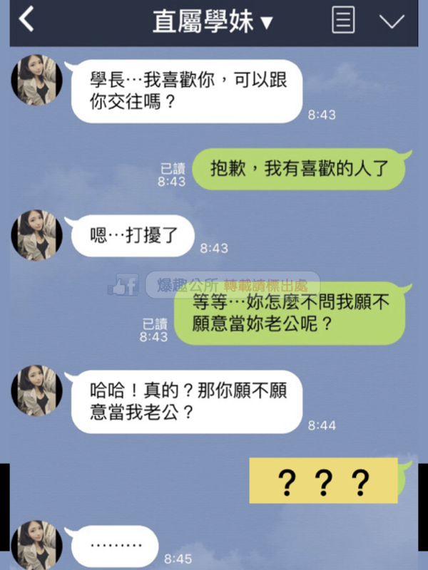 學妹告白被拒絕,學長叫學妹問下一個問題...結局大展開!