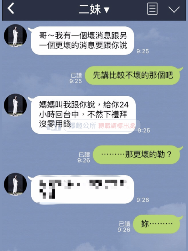 妹妹找總是沒好事...兩個消息都是壞消息...