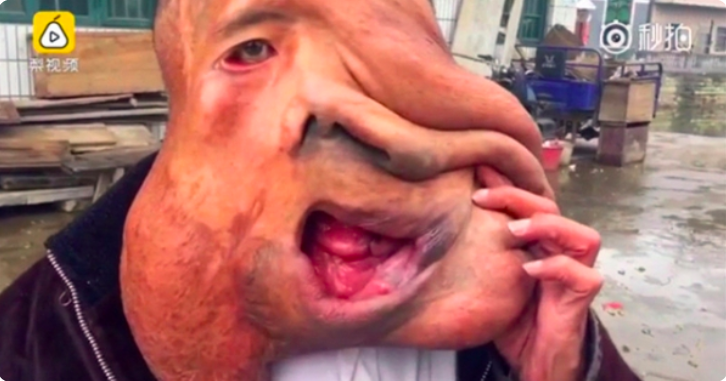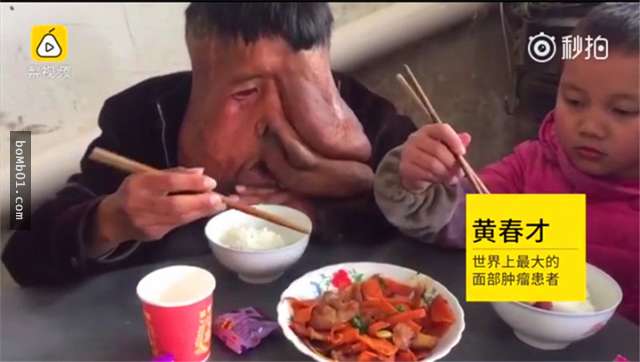 大陸39歲男子黃春才的臉上長有一個巨大的「神經纖維瘤」,這影響了他的生活,讓他痛苦不堪。