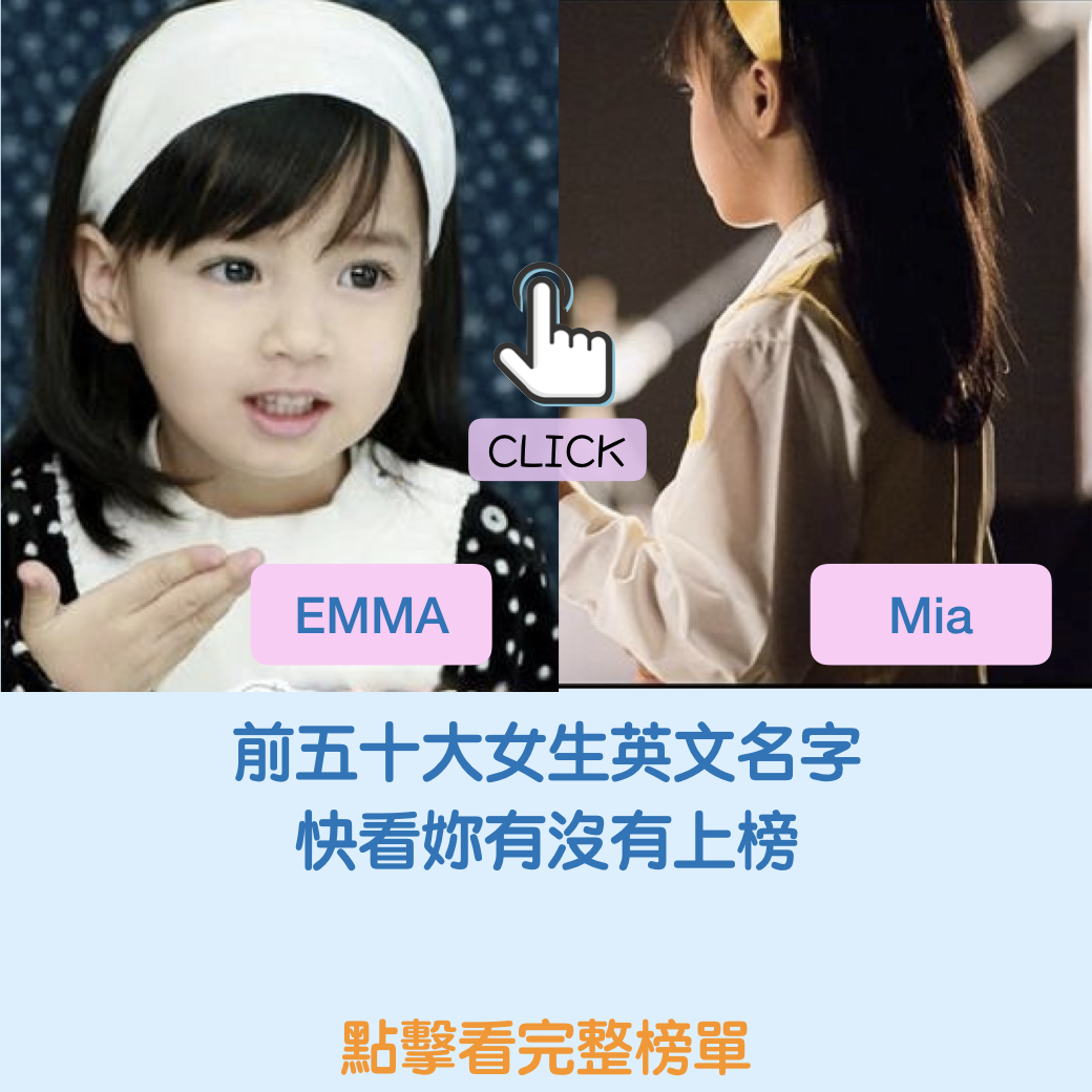 今天就來看看「前50大英文菜市場名–女生篇」,來看看妳有沒有上榜吧