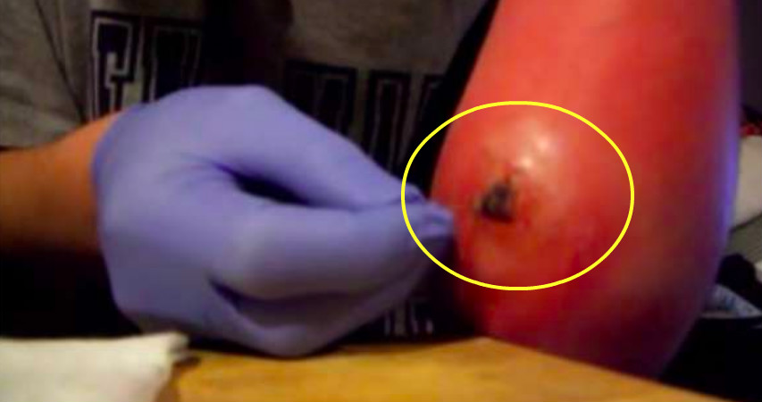 他決定自己擠出傷口處的膿血,這一過程讓人看得驚心動魄。
