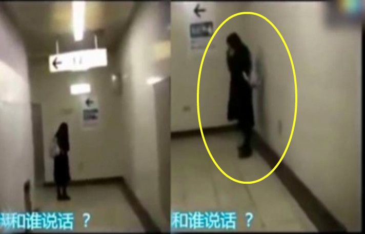在女子的對面真的有個人在跟她說話!但那個人卻是我們看不到的啊!!