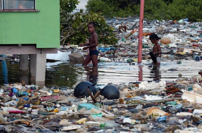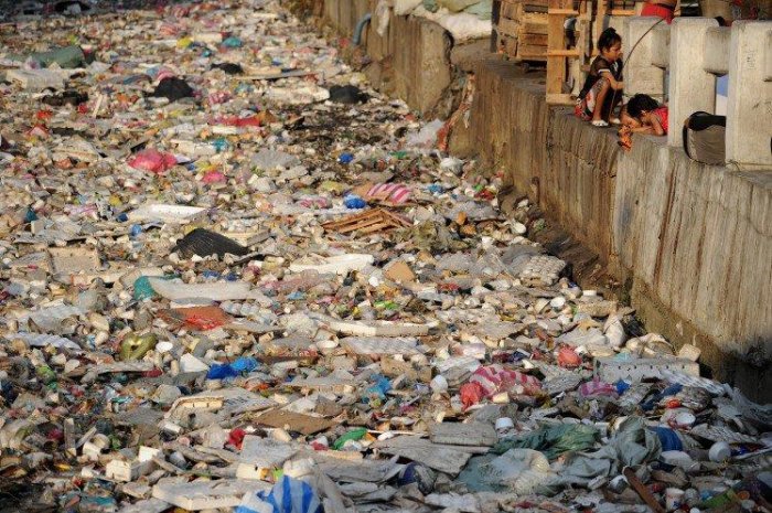 ▼位於馬尼拉的垃圾河,裡面的垃圾多到已經看不見河水了。