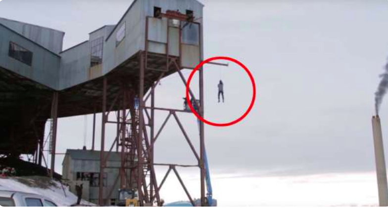 ▼Andreas跳下時,綁著重物的繩子飛快滑落,最終纏繞在鋼管上,阻止了他落下的趨勢。