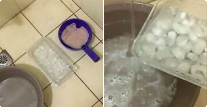 ▼潘彼得將水龍頭調到冷水,並在桶中加入了很多冰塊,最後將水澆到了身上。