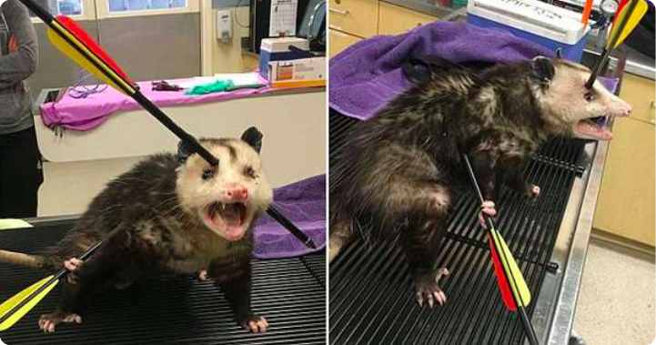 美國加州有隻負鼠,被當地動物庇護中心的工作人員發現身中兩箭,其中一箭還直接貫穿頭顱,不過這隻負鼠展現超強生命力,送醫急救後,目前已無生命危險