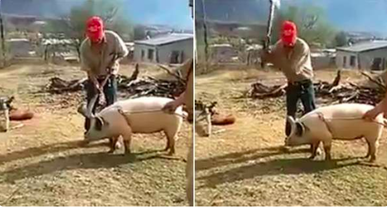 斧頭竟然砸在了他自己的頭上,農夫當場躺在地上痛苦不已。雖然不知道這隻豬最後的命運如何,但在臨死之前看到這樣的場景,牠應該能夠瞑目了。動動手指分享出去,讓大家都看到這「現世報」的一幕吧。