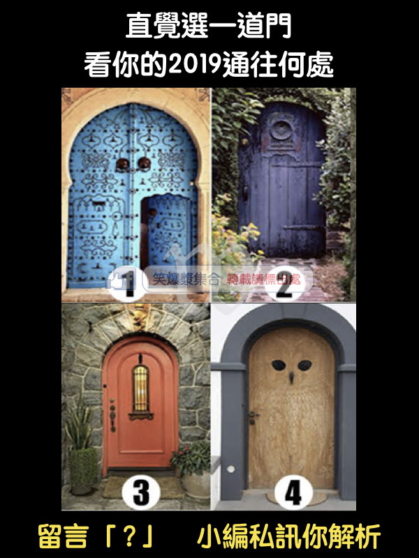 選這道門的你是活潑善良的,異性通常都很喜歡你,但也別因為這樣忘了自我。而且你很無私,所以2019的你的生活快樂又無憂。