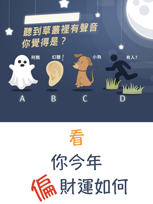 你最近的偏財運是可不是很理想!你是物質欲望較重的一群!選擇A的朋友,最近可要好好控制一下自己的物質欲望了!
