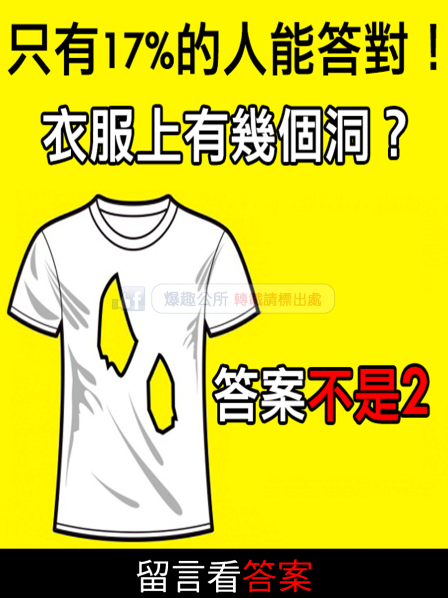 【QAb】只有17%的人能答對! 衣服上有幾個洞?