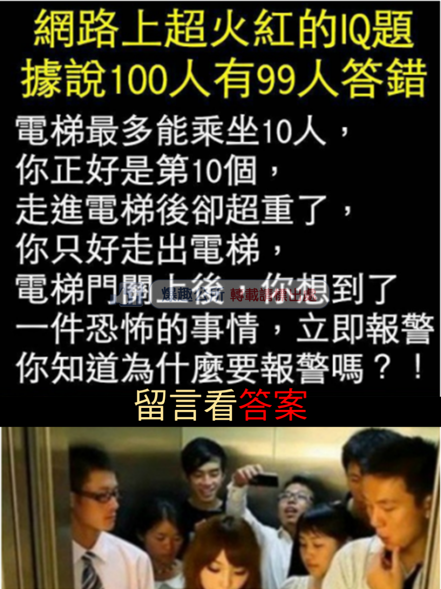 根據題目所說的「電梯頂部沒有屍體」,則說明被隱藏的第十一人已經死亡,屍體被隱藏。而屍體被隱藏在電梯裡的原因,則是因為電梯內的9人是共犯。有人說是9人分屍藏在身上,也有人是分食屍體,但不符合題目。命題的目的已經很明顯,不可能藏屍。