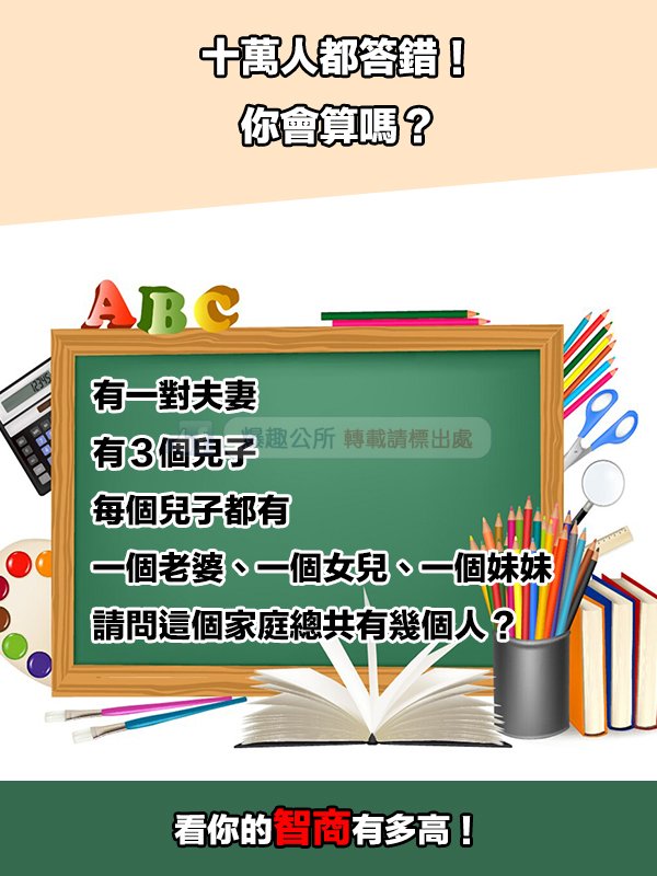 先生,太太,3個兒子,3個兒子的老婆×3,3個兒子的女兒×3,